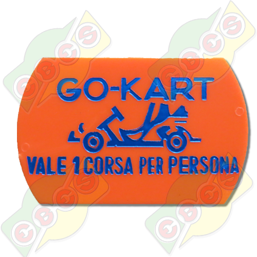 Biglietti in plastica realizzati in materiale ABS anti-urto ed atossico di forma Rettangolare con 2 lati arrotondati di misure 37 x 60 x 1,9mm , disponibili in confezioni da 500 pezzi stampati tramite impressione a caldo su 1 lato con disegno di nostra realizzazione, per giostra GO-KART.