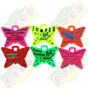 Biglietti in plastica relizzati in materiale ABS anti-urto ed atossico a forma di FARFALLA di misure 44 x 57 x 1,9mm ,